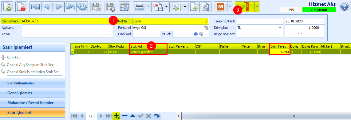 İŞLEMLER modülündeki Alış İşlemleri menüsünden Hizmet Alış işlem penceresi açılır.