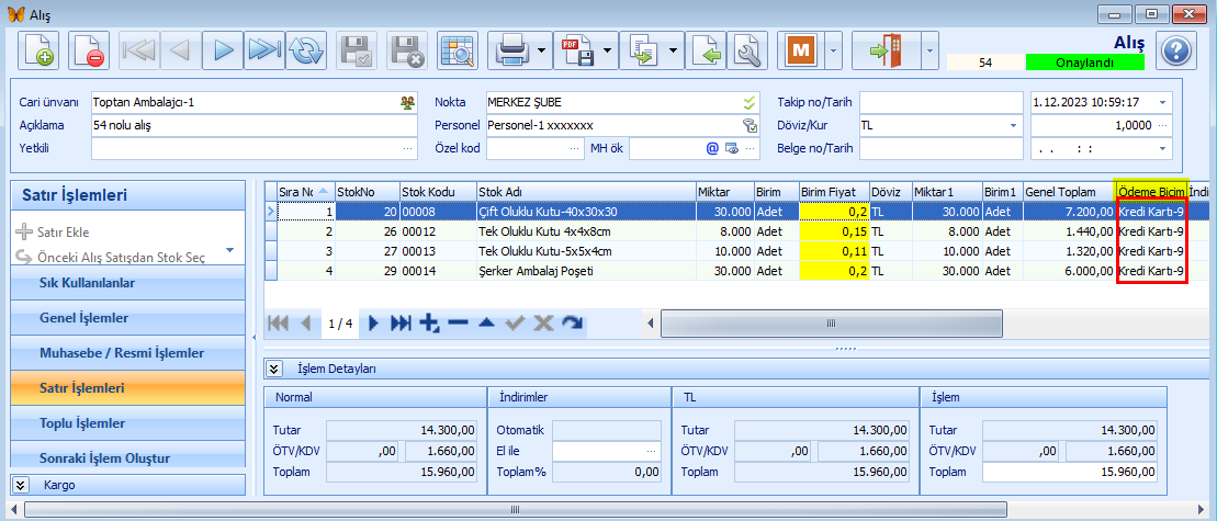 butonuna tıklanarak işlem tamamlanır. Kayıt Onaylandı(11) durumuna getirilir.