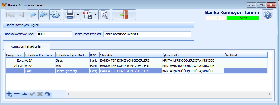 9.Banka komisyonu ise İŞLEMLER modülündeki Finans İşlemleri menüsünde Banka Komisyon İşlemleri penceresindeki Banka Komisyonları sekmesinde görülür. Burada komisyon