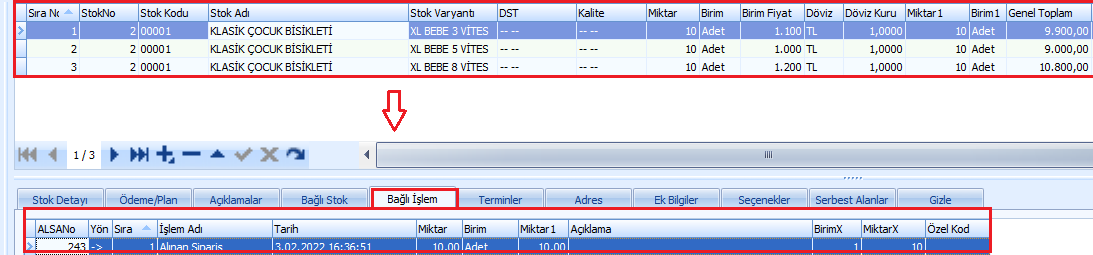 ➢Bağlı stok sekmesinde teklife bağlanan stok işlemi yapılmadığı için bu bölümde işlem kaydı gösterilmez.