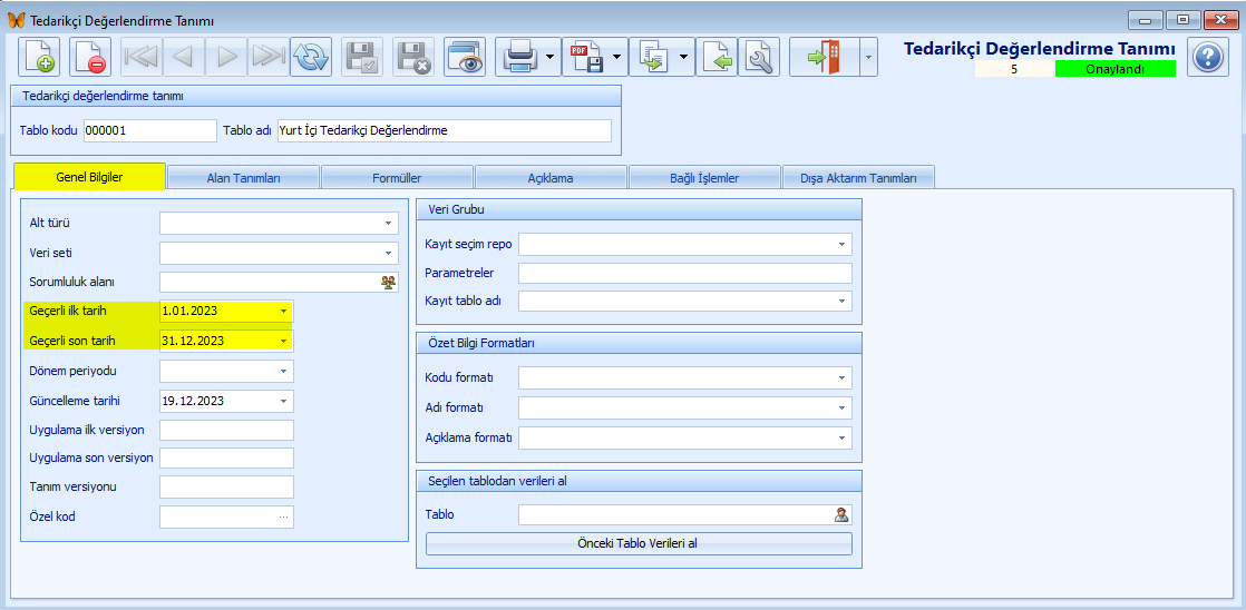 Tedarikçi değerlendimesinin geçerlilik tarihi girilir.